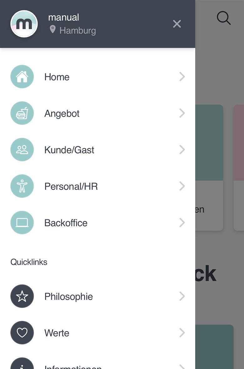 Serviceablauf, Rezepturen, Einarbeitungspläne, Handbuch, Formulare etc. sind leicht und intuitiv auffindbar.