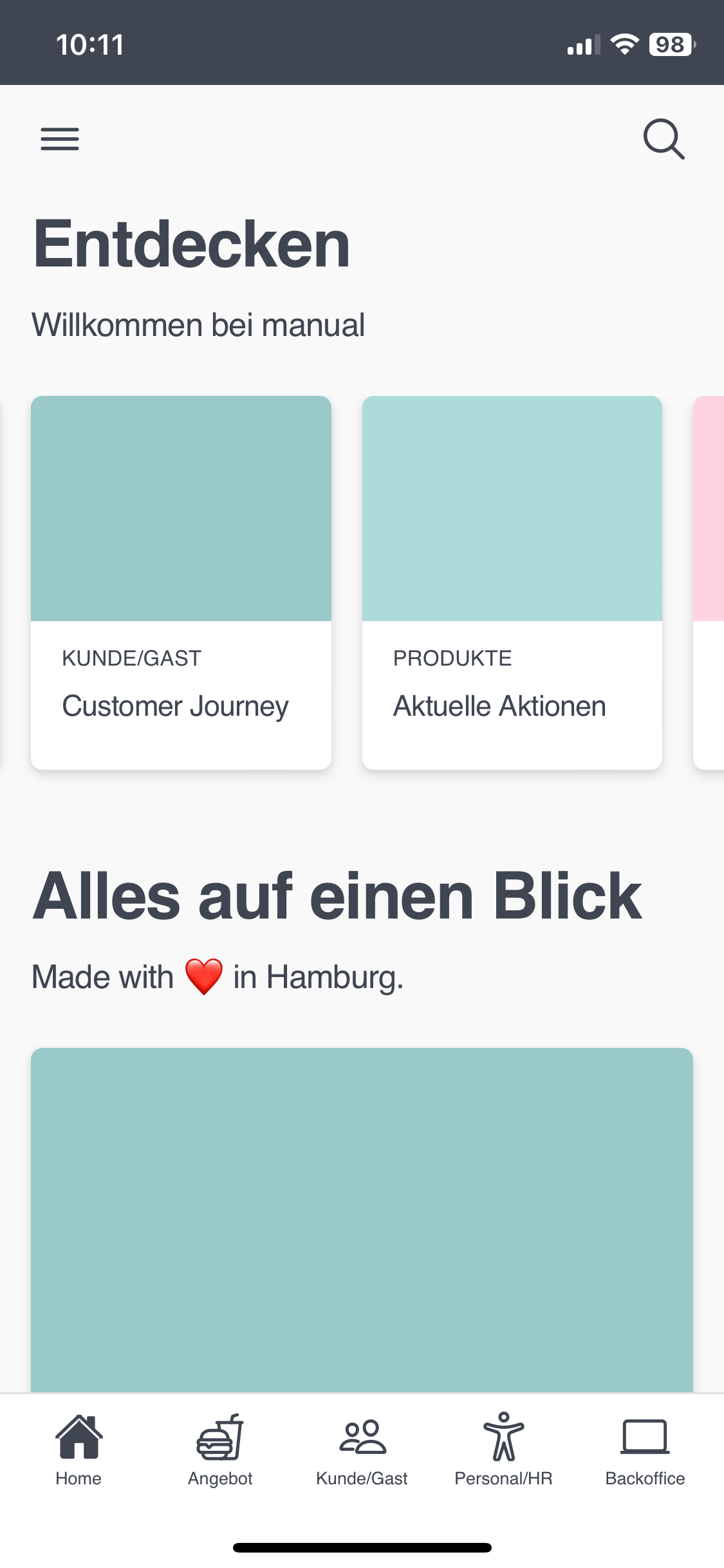 Ziel ist es Ihren Mitarbeitenden mit manual die tägliche Arbeit zu erleichtern und zusammen weitere Potentiale zu heben.